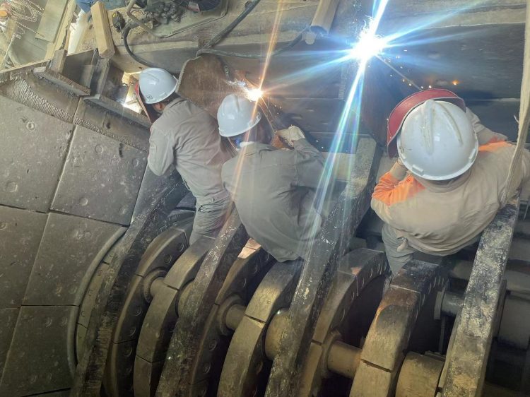 此次設(shè)備搶修攻堅(jiān)戰(zhàn)可謂是時(shí)間緊、任務(wù)重,由于空間狹小,不僅給焊接工作帶來(lái)極大的難度,而且危險(xiǎn)性極大,需要長(zhǎng)時(shí)間保持一個(gè)姿勢(shì),有的員工全身僵硬仍在咬牙堅(jiān)持,再加上夜間施工能見度低,精神易疲憊等等諸多不利因素也給整個(gè)搶修工作帶來(lái)了極大的困難!