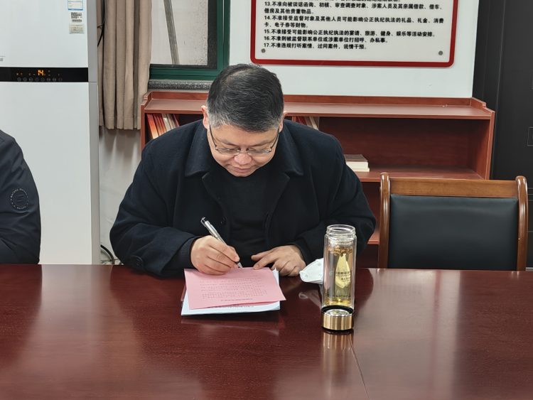 會后,全體紀(jì)檢監(jiān)察干部分別簽署了《拒絕酒駕醉駕承諾書》,紛紛表示簽訂承諾書,既是表率,也是約束,作為紀(jì)檢監(jiān)察干部,自覺以更高標(biāo)準(zhǔn)、更嚴(yán)要求踐行忠誠干凈擔(dān)當(dāng)!樹牢紀(jì)律和規(guī)矩意識,消除僥幸心理,從思想源頭上遏制紀(jì)檢監(jiān)察干部發(fā)生酒駕醉駕違紀(jì)違法行為,以實(shí)際行動為大力營造風(fēng)清氣正的良好政治生態(tài)、遵紀(jì)守法的社會環(huán)境提供堅(jiān)強(qiáng)保障。